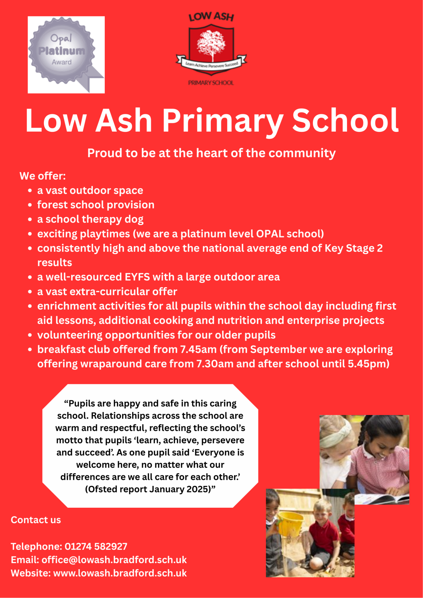 Should you wish to visit school, then please do not hesitate to contact us on 01274 582927, or email office@lowash.bradford.sch.uk